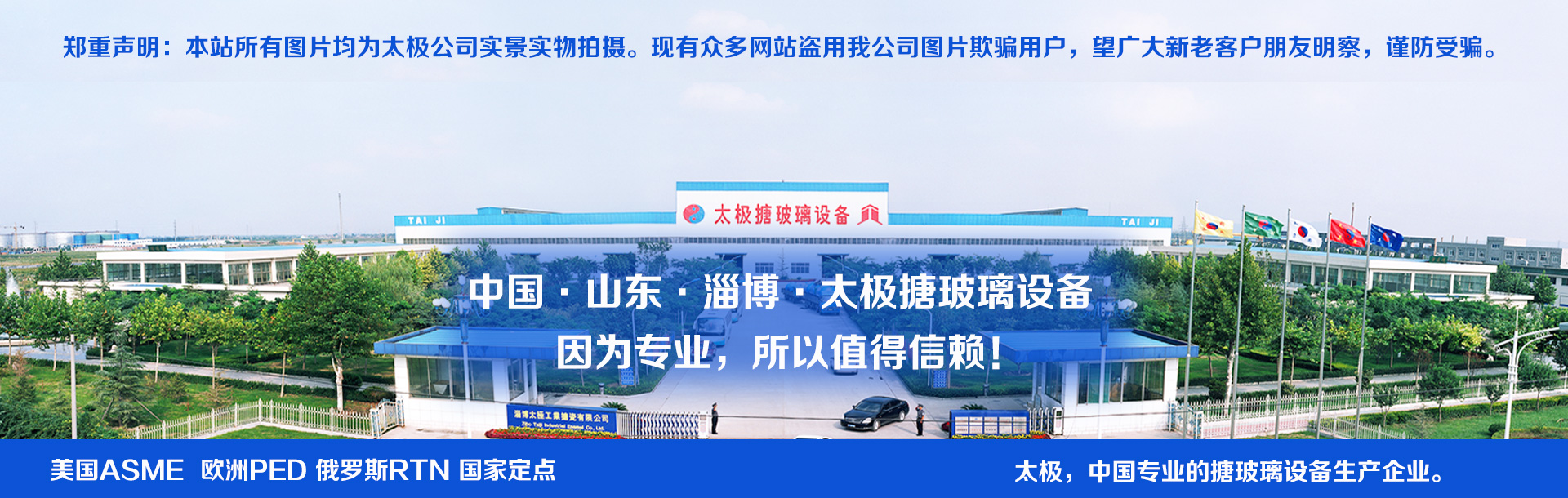 淄博太極在中國搪玻璃設備制造行業中通過ISO90001質量體系認證,并擁有美國ASME認證、歐洲PED認證以及國家部門頒發的一、二、三類壓力容器設計證、制造證、搪玻璃制造許可證、進出口許可證和幾十項榮譽證以及三十六項搪玻璃設備生產專利等,并獲得“山東名牌”的光榮稱號。